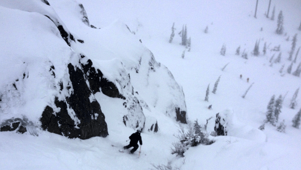 If you hoot and holler but no one is at Squaw Valley to hear it, do you really make a sound? That’s the question that came to mind yesterday as Squaw was EMPTY…and with over a foot of fresh on the ground conditions were GREAT. The morning started off a little slow with the upper mountain on stand by, but KT was holding some deep pockets, and harbored no line. And by the time a slight line started to form (barely past the ticket scanners), the rest of the mountain opened and it was game on.