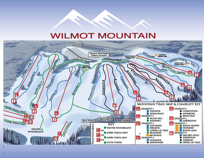 Wilmot is in Wisconsin. See trail map; the farthest run on the left is the state line.