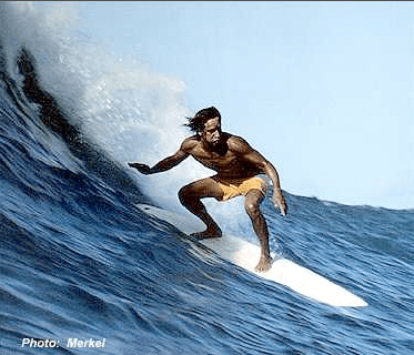 Edward Ryon Makuahanai Aikau (Kahului, Hawaii, May 4, 1946 – March 17, 1978) was a well-known Hawaiian lifeguard and surfer. The words Makua Hanai in Eddie Aikau’s full name means feeding parent, an adoptive, nurturing, fostering parent, in the Hawaiian language. As the first lifeguard at Waimea Bay on the island of Oahu, he saved over 500 people and became famous for surfing the big Hawaiian surf, winning several awards including the 1977 Duke Kahanamoku Invitational Surfing Championship.